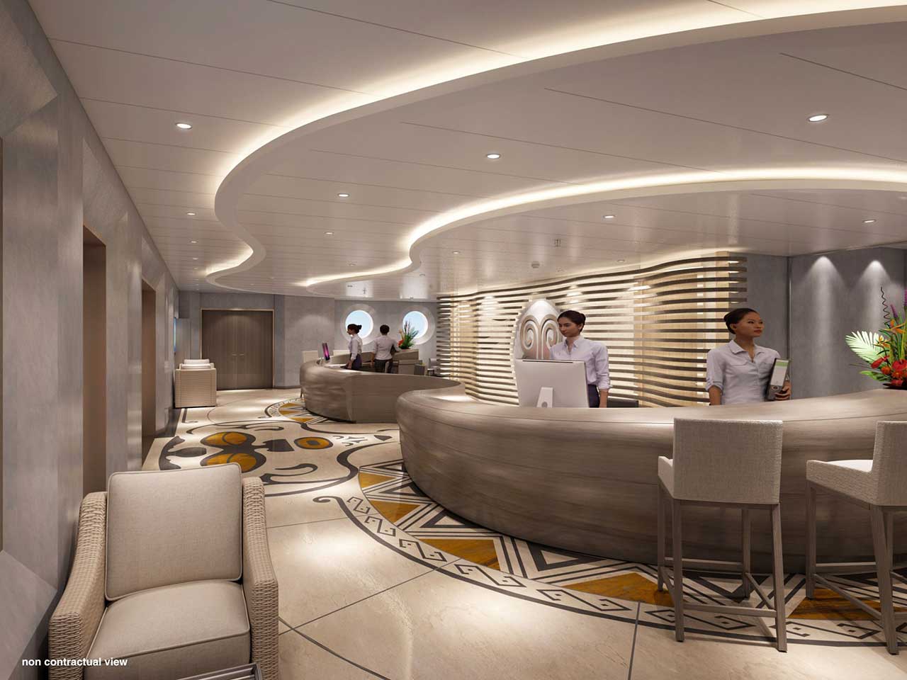 Le navire dispose de deux petites piscines sur le pont 6, de deux bains à jets sur le pont 7, d’une salle de sport, d’un espace spa, d’un salon de tatouage et d’une boutique.