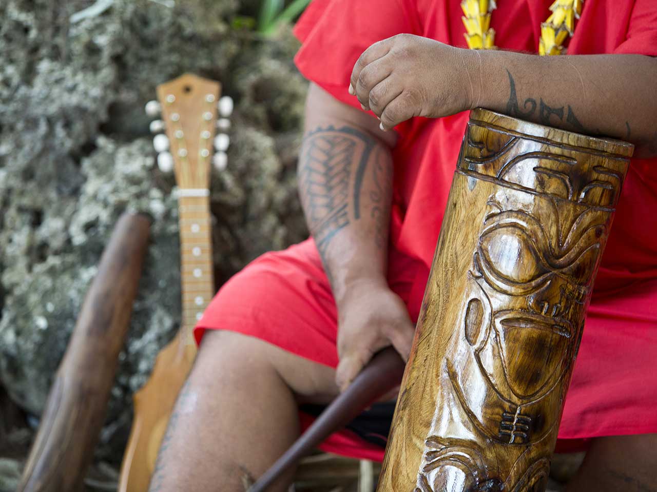 Votre aventure commencera par la visite de la cathédrale de Taiohae, célèbre pour ses sculptures. Au village de Hatiheu, vous découvrirez le site archéologique de Tohua Kamuihei où se déroulaient les festivités publiques. Assis sous un banian géant, vous apprécierez un spectacle de chants et danses traditionnels, notamment la « Danse du cochon » originaire de Nuku Hiva. Le traditionnel « Umu » vous sera servi au déjeuner. C’est une spécialité marquisienne dont les ingrédients sont cuits dans un four encastré dans la terre.