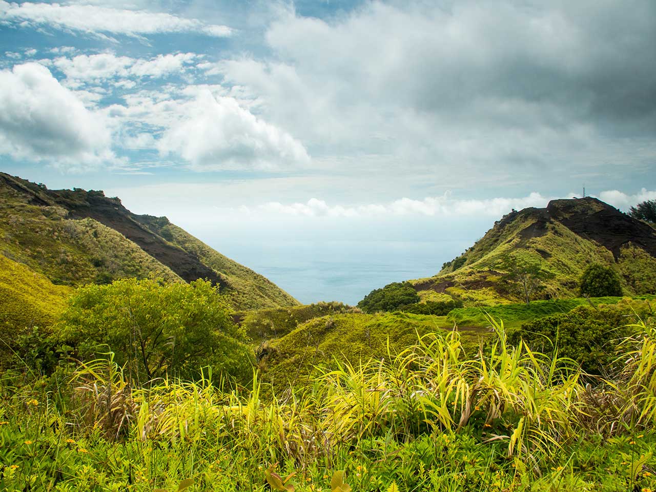 À votre arrivée aux Marquises, il faudra avancer vos montres d’une demi-heure. Bienvenue sur Nuku Hiva, la plus grande île de l’archipel. Récente géologiquement parlant, elle n’est, après tout, que la crête émergée d’immenses volcans éteints seulement depuis deux millions d’années. Ses façades tourmentées, ses baies profondes, ses vertigineux à-pics qui tombent brutalement dans un Pacifique sombre, dessinent une île somptueuse et surprenante.