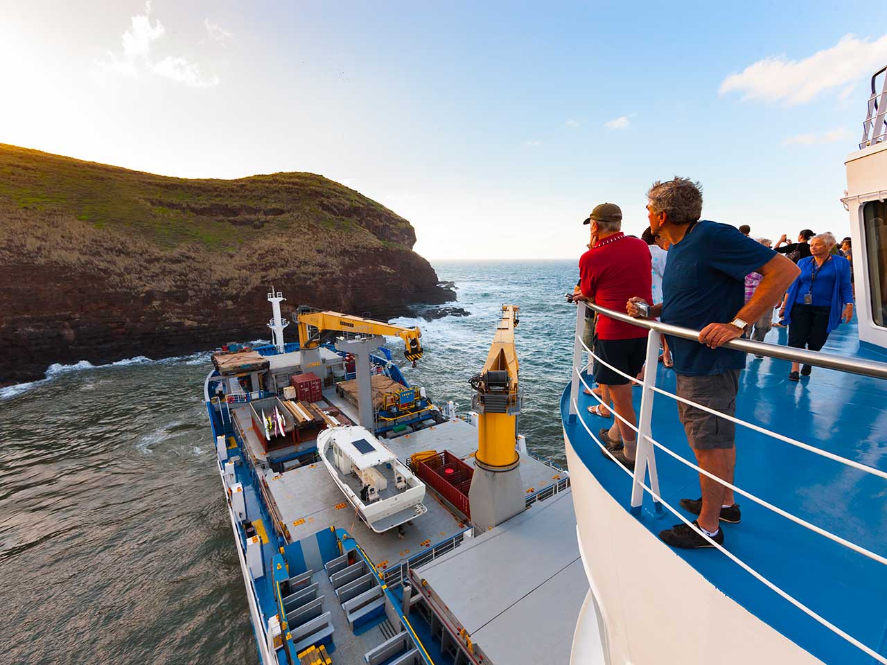 À noter : le programme ci-dessus est donné à titre indicatif. L'ordre des îles visitées pourra être modifié. N'oubliez pas que vous vous trouvez à bord d'un cargo mixte. Il se peut que le capitaine doive modifier l'horaire du programme en fonction des marées, de la météo, ou des durées inhabituelles de débarquement ou d'embarquement du fret.