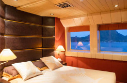 Sur le pont intermédiaire, vous trouverez 9 cabines Mahana. Elles font également 15 m2 et sont meublées d’un lit queen-size. Elles disposent d’une vue un peu plus haute sur le paysage environnant.
