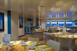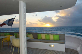| Aménagements bateau | 3 ponts. Un solarium à l’avant, un restaurant, un bar, une plateforme pour les activités nautiques, un grand espace salon panoramique avec bibliothèque. |