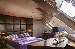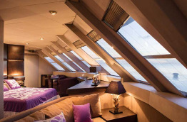 La suite panoramique Fetia offre une vue exceptionnelle sur l’avant du bateau. Ses 35 m2 comprennent un espace chambre avec lit king-size, ainsi qu’un coin salon avec canapé où vous aimerez vous détendre en admirant la mer.