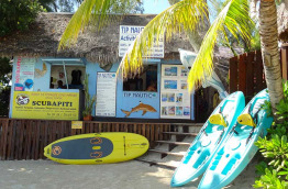 Les Tipaniers propose des activités gratuites : pirogue à rame, volley-ball, ping-pong, pétanque. L’accès à une belle plage de sable blanc, avec son long ponton qui s’avance dans le lagon, compense l’absence de piscine.