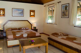 Les 9 Bungalows Standard se situent dans les jardins, mais en seconde ligne ils sont donc assez proches de la plage. Certains ont tout de même une vue sur le lagon. Ils peuvent accueillir de une à quatre personnes dans un lit double et des lits jumeaux. Ce sont les seuls bungalows à ne pas avoir de cuisine.