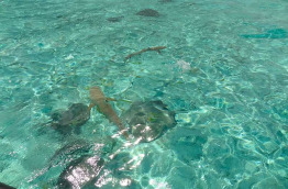 Ensuite, direction le lagon scintillant. À bord d’un bateau, vous voguerez en direction d’un motu où vous vous arrêterez pour le déjeuner. Peut-être apercevrez-vous quelques raies pastenagues et requins à pointes noires sur le trajet.