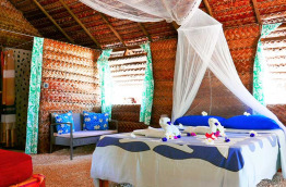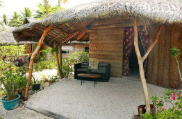La Pension Espace Beach compte 3 bungalows, situés face à la plage. Ils sont fabriqués de façon typiquement polynésienne, avec des matériaux locaux : les murs et la toiture sont en palmes de cocotier tressées, le sol est constitué de coraux écrasés… À l’intérieur, la décoration est colorée et traditionnelle. Chaque bungalow dispose d’une salle de bains privative, d’un ventilateur et d’un réfrigérateur.