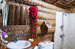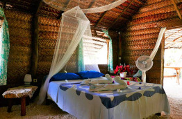 L’unique Grand Bungalow compte 3 chambres en tout, et est idéal pour les familles ou les groupes d’amis de 6 personnes. Au rez-de-chaussée, on retrouve un coin salon, 2 chambres et la salle de bains. Le bungalow dispose aussi d’une mezzanine, où on retrouve la troisième chambre. Toutes sont équipées de lits doubles avec moustiquaire.