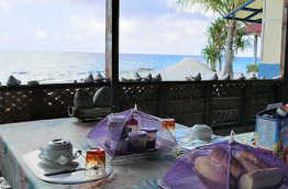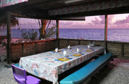 Le matin, installez-vous autour de la grande table du petit-déjeuner, et servez-vous en pain, beurre, confiture, fruits frais selon arrivage des Marquises, jus de fruits, thé, café ou encore chocolat chaud… Rien de tel que de débuter la journée face au bleu du lagon.