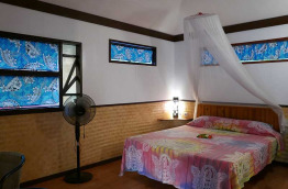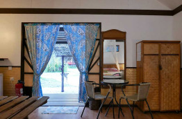 5 Bungalows typiquement polynésiens sont installés à l’écart de l’habitation principale. Construits à la polynésienne avec des matériaux naturels, ils sont tous dotés d’une salle de bains privative sans eau chaude : l’eau est chauffée naturellement par la chaleur du soleil. Le confort est simple, mais les bungalows sont spacieux. Offrant une capacité de 3 adultes ou 2 adultes et 2 enfants, chacun dispose d’un lit queen-size, d’un lit double, de moustiquaires, d’un ventilateur, d’un réfrigérateur, et d’une terrasse couverte.