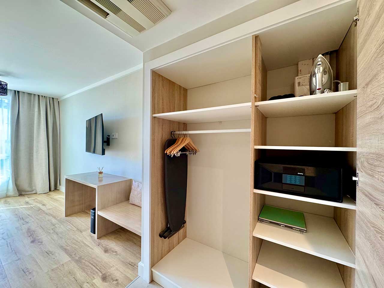 Cet hôtel moderne est construit sur 5 étages, et compte 43 chambres et suites au design épuré. Toutes sont équipées de l’air conditionné, d’une télévision, d’un téléphone, d’un coffre-fort, de l’accès internet Wi-Fi, d’une salle de bains avec douche, et d’une kitchenette (sauf dans les Chambres Ville) incluant un four à micro-ondes, un évier, un petit réfrigérateur, de la vaisselle et un nécessaire à thé et café.