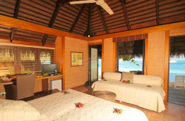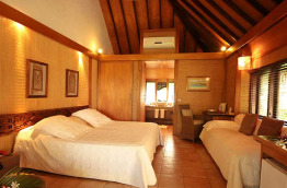 4 Lagoon Front Bungalow de 40 m2 ont été récemment rénovés. Ils bénéficient d’une belle vue sur la mer et sur l’île voisine de Raiatea. Ces bungalows sont particulièrement adaptés aux familles, car ils ont un grand lit king-size ou deux lits simples, plus un canapé convertible. Ils bénéficient en plus d’une belle terrasse de 18 m2.