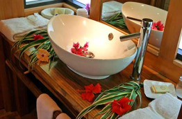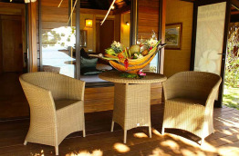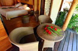 5 Deluxe Lagoon View Bungalow et 7 Deluxe Beach Bungalow sont les plus spacieux avec leurs 48 m2, plus une terrasse privative de 15 m2 et un jardin privatif clos de 14 m2 avec douche extérieure. Ils constituent un parfait nid pour les amoureux et offrent une vue splendide sur le lagon. Les bungalows vue lagon sont situés en deuxième ligne, alors que les bungalows plage sont directement les « pieds dans le sable.