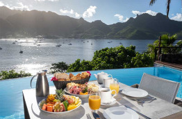 L’hôtel Nuku Hiva by Pearl Resorts possède une piscine à débordement. En contrebas de l’hôtel, au pied des 50 marches, une plage de sable noir vous attend.