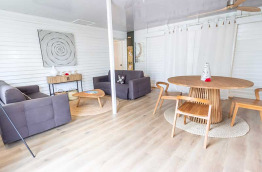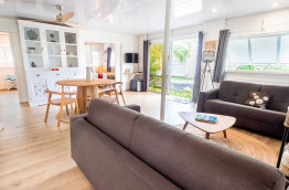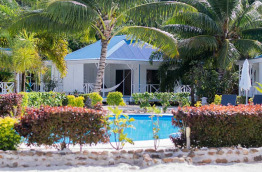 Outre une petite plage privée qui n’est pas propice à la baignade, vous apprécierez la piscine d’eau douce entourée de transats, et surtout le ponton qui vous permettra de goûter au lagon, et de faire du snorkeling.