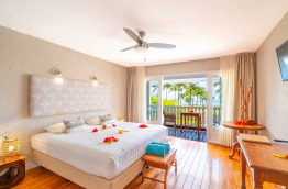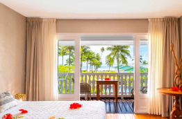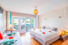 Les 11 Chambres Vue Lagon sont similaires aux précédentes dans l’aménagement et la décoration, mais bénéficient d’une plus belle vue dégagée sur le lagon.