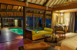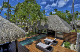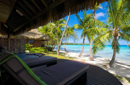 3 Deluxe Beach Bungalow qui sont une invitation à la détente. Situés en bord de plage, ils possèdent une salle de bains intérieure et une baignoire extérieure à ciel ouvert qui la prolonge, permettant de savourer la douceur des nuits tropicales tout en prenant un bain aux senteurs de tiare ou d’ylang-ylang. Enfin, la piscine individuelle extérieure offre une vue imprenable sur le lagon. Conçus idéalement pour 2 personnes, ils peuvent accueillir un lit supplémentaire.
