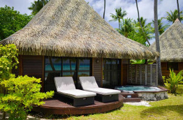 25 bungalows longent la plage de sable blanc bordée de cocotiers. Les clients seront sensibles au confort des bungalows et à la décoration d’inspiration polynésienne, toits de palme, murs de pandanus et de bambou. Les bungalows sont tous équipés de salle de bains avec douche, bain à jets (piscine pour le Deluxe Beach Bungalows), d’un lit king-size et d’un sofa.