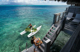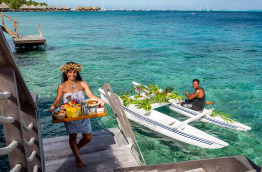 L’unique Overwater Villa Moorea View, également sur pilotis, offre 65 m2 de superficie, et une terrasse de 30 m2. Cette villa se trouve autour du motu de l’hôtel, près des Motu Suites. Elle comprend une chambre spacieuse, et un grand salon chaleureux.