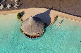 Le Lotus Bar est situé près de la piscine à fond de sable du Lotus. C’est le spot idéal pour déguster des cocktails tropicaux dans l’eau.