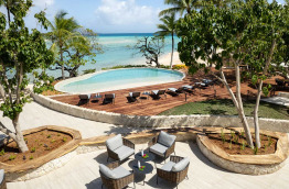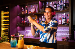 Le bar Tianoa offre également un cadre très agréable, niché entre la piscine d’eau douce, la plage et le lagon.