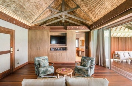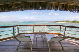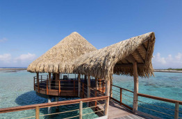 8 Overwater Suites, éloignées du ponton d’arrivée, dominent les eaux calmes et limpides du lagon sablonneux, avec une vue imprenable sur le magnifique lagon turquoise de Tikehau. De grande superficie (environ 93 m2), elles offrent de nombreux équipements luxueux, notamment offrent un accès direct au lagon depuis la terrasse.
