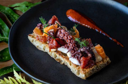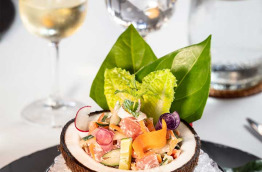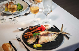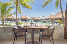 Les repas sont servis au restaurant Poreho, en terrasse ou à l’intérieur, mais avec toujours une vue panoramique sur le lagon : un cadre magique pour déguster une cuisine européenne et polynésienne, dans laquelle le chef fait la part belle au poisson et produits locaux. Le cadre du restaurant, en bord de plage, est tout à fait charmant.