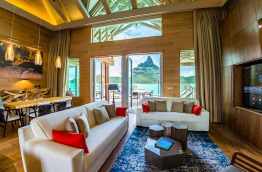 4 2BR Villa Teremoana & Pool de 322 m2 dont une terrasse de 108 m2, sont situées en bout de chaque ponton, et offrent une vue splendide sur le mont Otemanu en plus de l’espace de vie et leur piscine privée. La suite est moderne et luxueuse et comprend deux chambres. Les clients qui séjournent dans ces suites bénéficient de services exclusifs.
