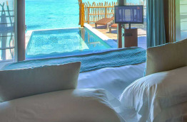 5 Overwater Pool Villa Beach View sont situées en bout de ponton, à la fin des pilotis, offrant ainsi une vue exceptionnelle et une tranquillité absolue, sans vis-à-vis.