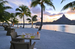 Pour déjeuner ou dîner, vous pourrez aussi choisir le Sands, situé sur la plage de sable blanc privée, avec une belle vue sur le Mont Otemanu et le lagon. Le restaurant propose une sélection de salades, et plats simples en journée. Il est également ouvert pour le dîner en haute saison.