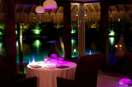 Le restaurant Le Corail est ouvert pour le dîner, et uniquement en haute saison, d’avril à novembre. Surplombant la lagune, il propose une cuisine gastronomique avec une touche locale et une belle cave à vin, sans doute la plus grande cave de Polynésie.