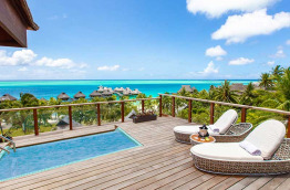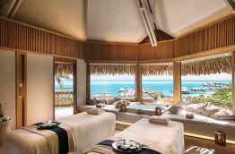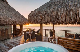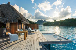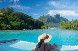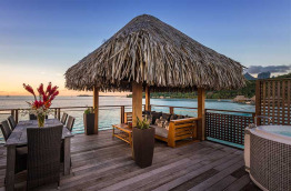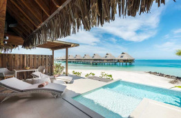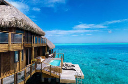 4 Otemanu View Pool Overwater Villas similaires dans l’aménagement sont tournées vers le Mont Otemanu, sommet de Bora Bora. Elles sont dotées en plus d’une piscine privée à débordement.