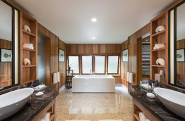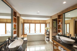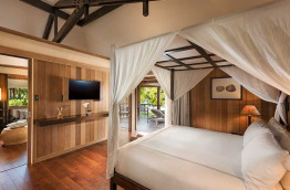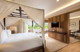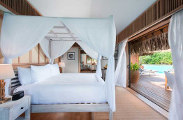 2 Beach Pool Villas se trouvent sur la plage, à quelques mètres du lagon. Elles offrent un espace de 124 m2, composé d’une chambre avec un lit king-size et d’une piscine privée face à la mer.
