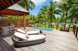 6 Tropical Beach View Villas with Pool sont identiques au niveau de l’aménagement, mais offrent en plus une petite piscine privée avec vue sur les jardins.