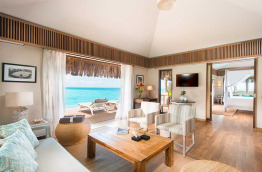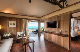 16 Overwater Villas de 116 m2 sont construites sur pilotis au-dessus du lagon. Ce sont les plus proches de la plage. Elles sont équipées d’un lit king-size, de fenêtres entièrement rétractables et d’un accès direct au lagon depuis la terrasse.