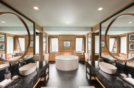 2 Presidential Overwater Villas offrent un espace de 300 m2 sur deux étages. Ces villas exceptionnelles sont composées de deux chambres, de trois salles de bains, d’un sauna, de deux dressings et d’un salon spacieux. Ses occupants profitent aussi de trois terrasses, d’une piscine à débordement, d’un bain à jets extérieur, d’un bar et d’un accès direct au lagon. C’est l’idéal pour héberger 6 adultes !