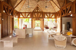 Sur pilotis, 64 villas de 144 m2, dont 103 m2 en intérieur. Elles sont très agréables et spacieuses, lumineuses, avec une partie vitrée au sol, et un accès direct au lagon depuis la terrasse.