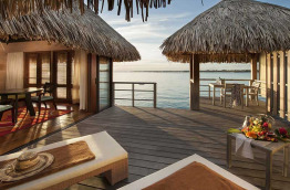 30 Overwater Superior Suite Villa, Lagoon View sont sur le ponton Est, avec une vue sur le lagon et la plage. Sur un autre ponton côté Ouest, 19 Overwater Deluxe Suite Villa, Island View bénéficient de superbes vues au soleil couchant, et 15 Overwater Deluxe Suite Villa, Mt. Otemanu View offrent un superbe panorama sur le mont Otemanu.