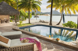 5 Garden Suite Villa, With Pool de 251 m2, dont 152 m2 intérieurs. C’est la catégorie d’entrée de gamme. Un havre de paix, les pieds dans le sable qui fait face au récif de corail, à l’océan, et aux îles de Taha’a et Raiatea. Vous pourrez profiter de superbes levers de soleil depuis votre terrasse, et bénéficiez d’un jardin clos, gazébo et petite piscine privée de 6 m x 4 m.