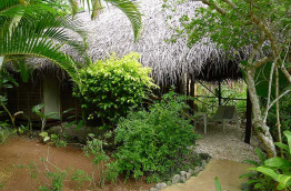 1 bungalow jardin Fare Niau, disposant d’une terrasse et équipé d'un lit double. Il peut accueillir de 1 à 2 personnes.