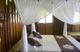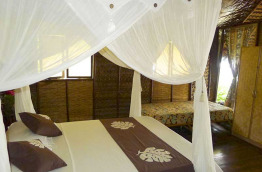 Les bungalows sont construits à la main, en matériaux naturels (bois, pierre, coquillages, corail) de manière traditionnelle, au plus proche des coutumes locales, et le mobilier est en bois.