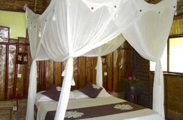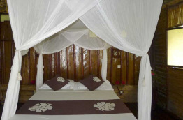 Les lits sont équipés de moustiquaires. Il y a une salle d’eau avec douche, et la terrasse aménagée donne sur le jardin tropical ou sur le lagon.