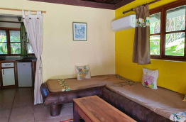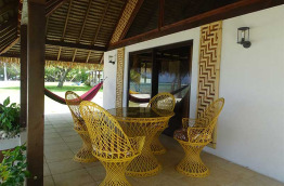 4 Bungalows Plage de 52 m2 avec la meilleure situation et un accès direct à la plage, sans compter la superbe vue sur le lagon. Entièrement rénovés en 2020, ils peuvent accueillir 3 adultes plus 1 enfant, dans un lit double et des lits simples. Ils ont un coin cuisine, ainsi qu’une grande terrasse avec un salon, un hamac et des bains de soleil.