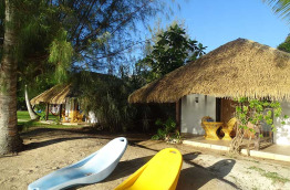 2 Bungalows Jardin de 62 m2 pouvant accueillir jusqu’à 5 personnes. Ils comptent une terrasse équipée de hamac, table et chaises, une belle chambre, un salon avec 2 couchages, ventilateur, coffre-fort, cuisine, une petite chambre avec un lit simple.