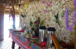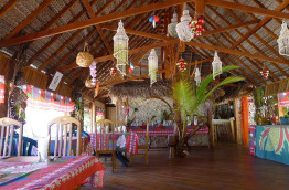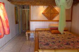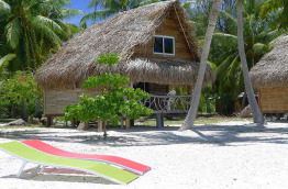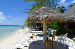 La pension possède seulement 9 bungalows de style polynésien installés sur pilotis, sur la plage proche de l’eau. Ils sont construits et décorés à la main à partir de matériaux locaux : bois de cocotier et de kahaia, bambou, toits en feuilles de palmier et pandanus, coquillages, etc.