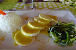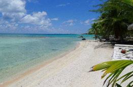 L’environnement de la pension est très agréable, elle est installée en bord d’une plage de sable blanc, avec une magnifique cocoteraie en arrière-plan. Le ponton privé permet d’aller observer les poissons, et de se mettre à l’eau dans le lagon.