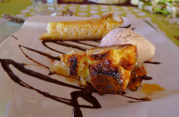 Les repas se prennent dans le Fare Pote’e. Vous y dégusterez des spécialités à base de produits locaux (poisson, bénitiers, langoustes etc.), avec fruits et légumes du jardin, cultivé par Paea. La terrasse face au lagon vous permettra de savourer les couchers de soleil.