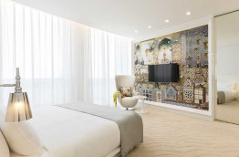 Les chambres et suites du Mondrian Doha offrent une décoration très lumineuse, imaginée par Marcel Wanders. Les meubles et objets sont principalement de couleur blanche ou dorée : seul un mur coloré et quelques détails se démarquent. Les chambres et suites offrent une vue sur l’île artificielle de The Pearl, sur les gratte-ciels de West Bay ou sur la ville de Lusail. Toutes comprennent l’accès internet Wi-Fi, une télévision, un bureau, et une salle de bains avec douche et baignoire.