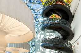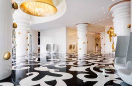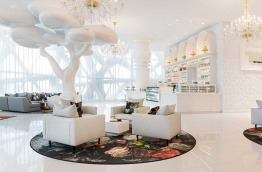 Bienvenue au Mondrian Doha. Dès votre arrivée à l’hôtel, vous serez émerveillés par les décors semblant provenir tout droit d’un conte de fées. Entre originalité et extravagance, découvrez son escalier monumental, son espace piscine aux murs et sols recouverts de motifs noir et blanc, ses grandes statues représentants des arbres blancs…