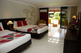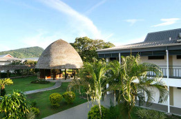 Les 95 chambres du Tanoa Tusitala Hotel font entre 34 et 40 m2. Elles sont installées dans des bâtiments en U, sur deux niveaux. La vue varie selon les chambres, soit sur les jardins, les courts de tennis, ou les parties communes.